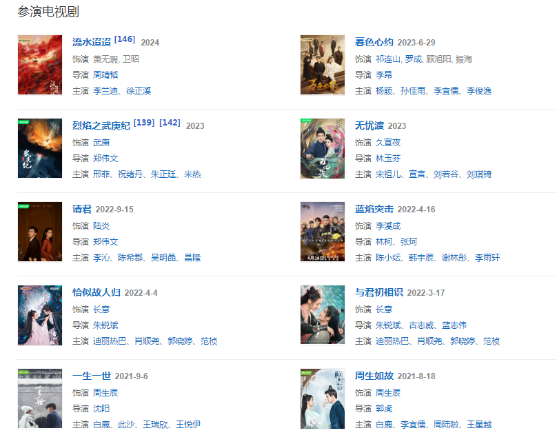 代表作品:大唐榮耀、錦衣之下、周生如故、一生一世、秋蟬、與君初相識(shí)、恰似故人歸