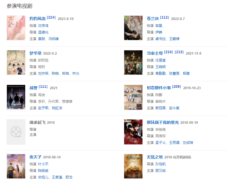 代表作品:醉玲瓏、熱血長安、重生之名流巨星、花千骨、大學(xué)生士兵的故事、新版紅樓夢、夜天子