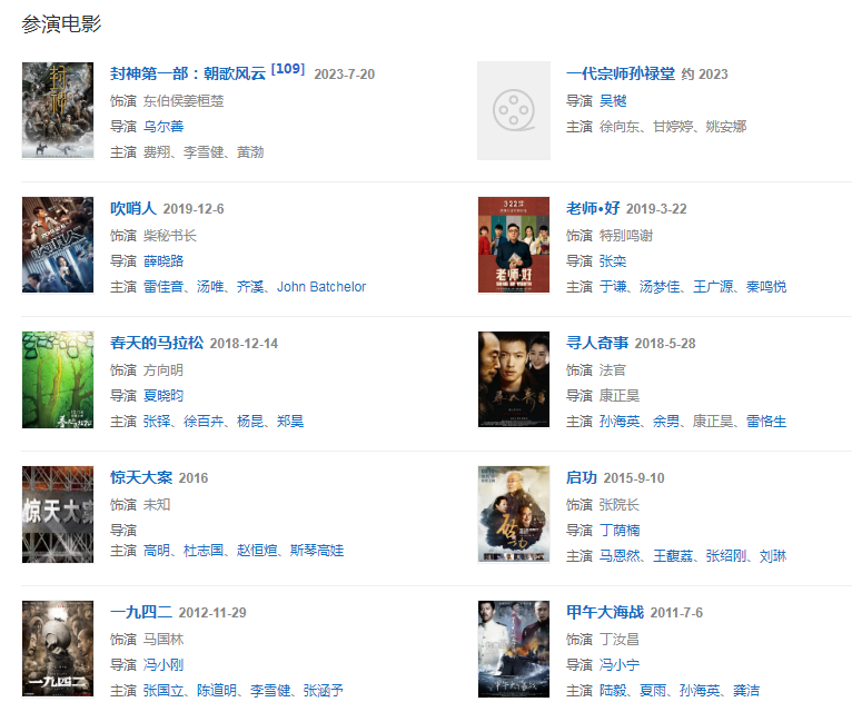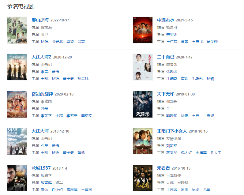 2018年12月出演正午陽光出品的電視劇《大江大河》,飾演水書記,12月 出演電影《春天的馬拉松》,飾演護(hù)林員方向明