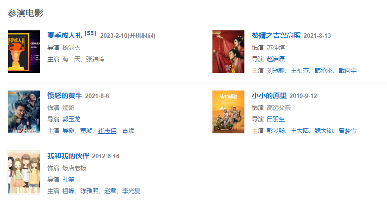 2006年,因參演首部電視劇《闖關(guān)東》而正式進(jìn)入影視圈。