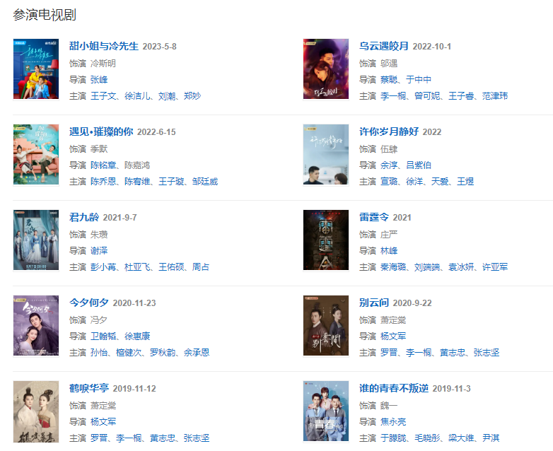 2019年11月3日主演的青春熱血都市劇《誰(shuí)的青春不叛逆》在芒果TV播出;11月12日,主演的古裝劇《鶴唳華亭》在優(yōu)酷播出。