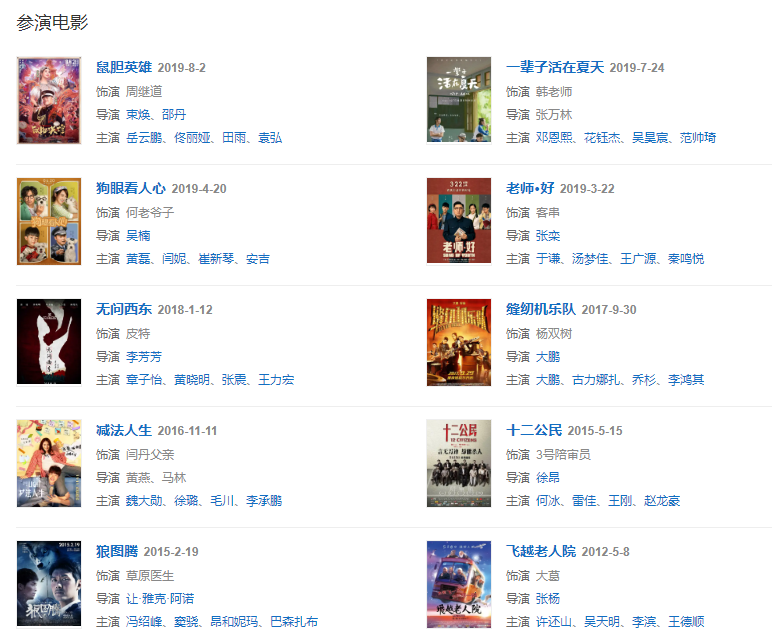 代表作品:永不瞑目、風(fēng)車、浮沉、大丈夫、紅高粱、長(zhǎng)安十二時(shí)辰、加油,你是最棒的、小幸福