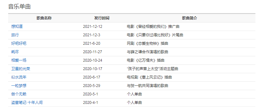 2020年11月27日,與薛之謙合作演唱的歌曲《耗盡》上線。