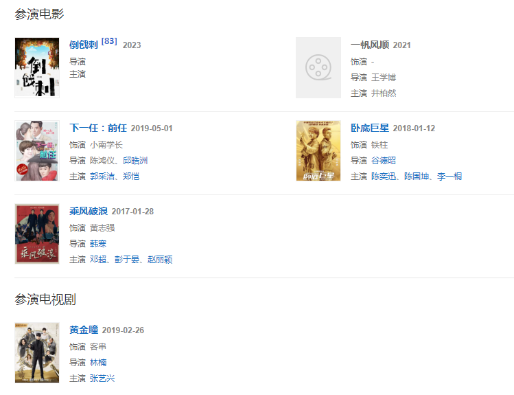 代表作品:模特、喜劇之王、年少有為、作曲家、不將就、嗯、耳朵、有理想、王牌冤家、不說(shuō)、李白、老街、麻雀、臥底巨星