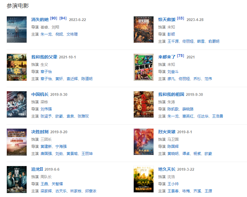代表作品:紅海行動、青年醫(yī)生、羅曼蒂克消亡史、高跟鞋先生、北京遇上西雅圖