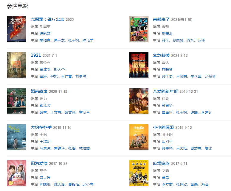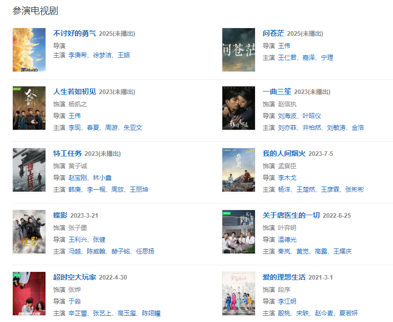 代表作品:相愛穿梭千年2、青春警事、關(guān)于唐醫(yī)生的一切、平凡的榮耀、愛的理想生活、人生若如初見、毛岸英、蘇菲日記、指縫里的光