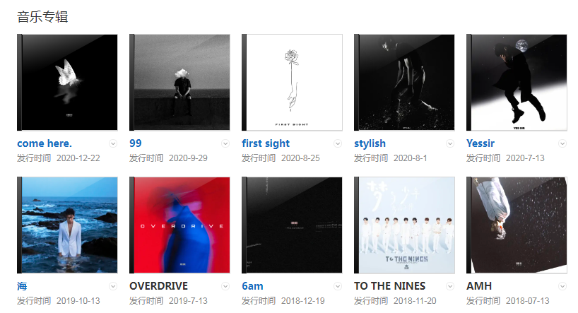 代表作品:怪你過分美麗、Yessir、Stylish、99、First Sight、OVERDRIVE、6am、AMH