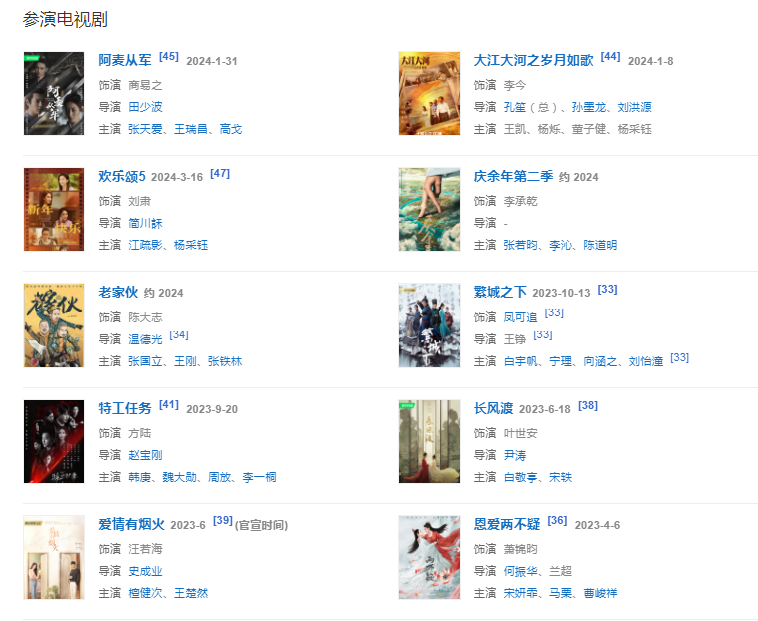2021年至2023年期間,參演作品《一剪芳華》《你好檢察官》《恩愛(ài)兩不疑》陸續(xù)播出。