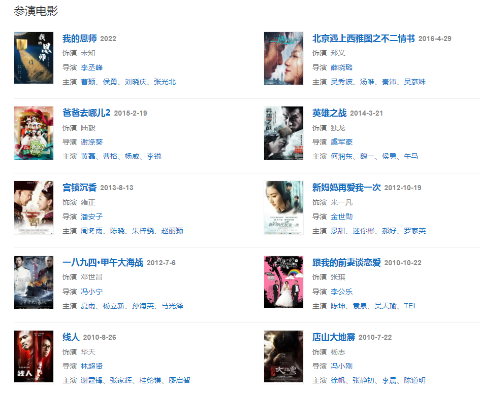 代表作品:永不瞑目、人民的名義、三國、男才女貌、長大、夜幕下的哈爾濱、蘇東坡、假如生活欺騙了你