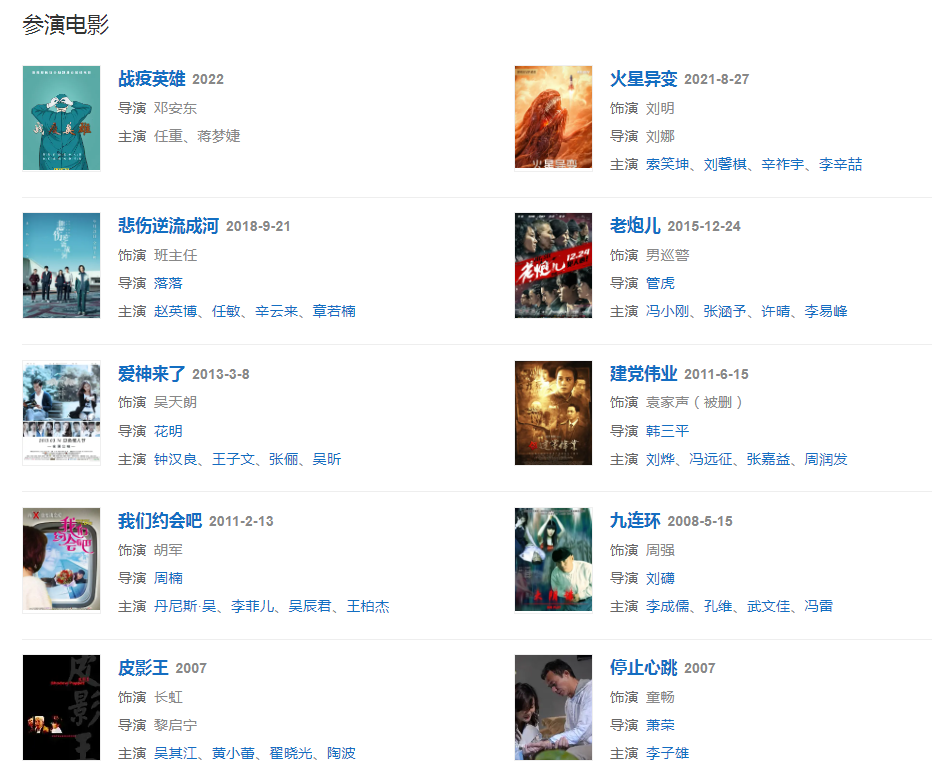代表作品:青年醫(yī)生、小爸媽、將婚姻進(jìn)行到底、婚姻保衛(wèi)戰(zhàn)、家的N次方、北京青年、新戀愛(ài)時(shí)代、實(shí)習(xí)生