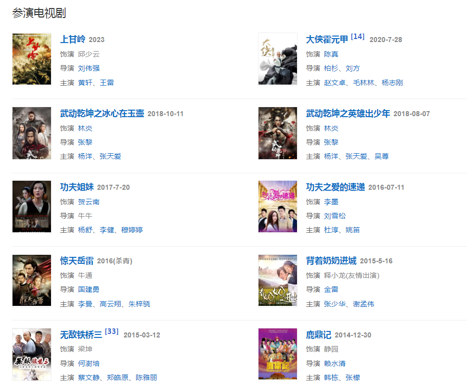 2015年,主演古裝武俠劇《驚天岳雷》。
