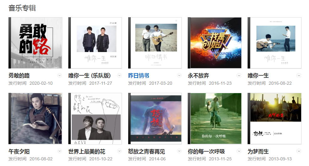 2016年1月3日,在福州舉行單曲《世界上最美的花》簽唱會(huì)。1月11日,在首屆“向文藝范看7”文藝頒獎(jiǎng)盛典中獲得“最具文藝范男歌手獎(jiǎng)”。 同年8月,水木年華成軍十五周年之際,將推出民謠情詩(shī)精選專輯《昨日情書》。