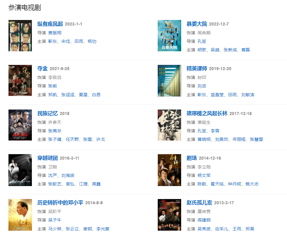 代表作品;走向共和、人間正道是滄桑、幸福來(lái)敲門、辛亥革命、趙氏孤兒案、瑯琊榜之風(fēng)起長(zhǎng)林、精英律師