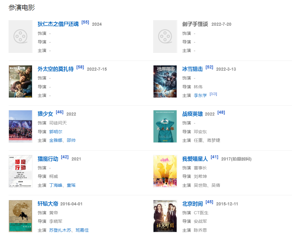 主要成就:上海國際電影節(jié)最佳動作男演員提名