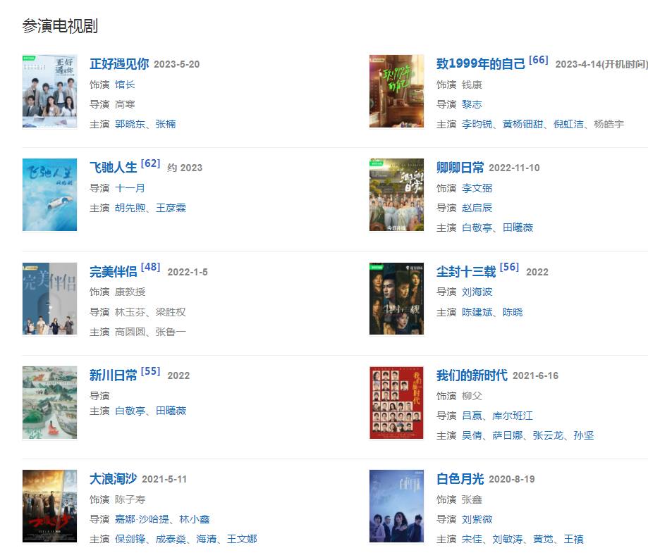 代表作品:武林外傳、大秦帝國之縱橫、做次有錢人、李可樂尋人記、都市男女、高粱紅了、擦槍走火