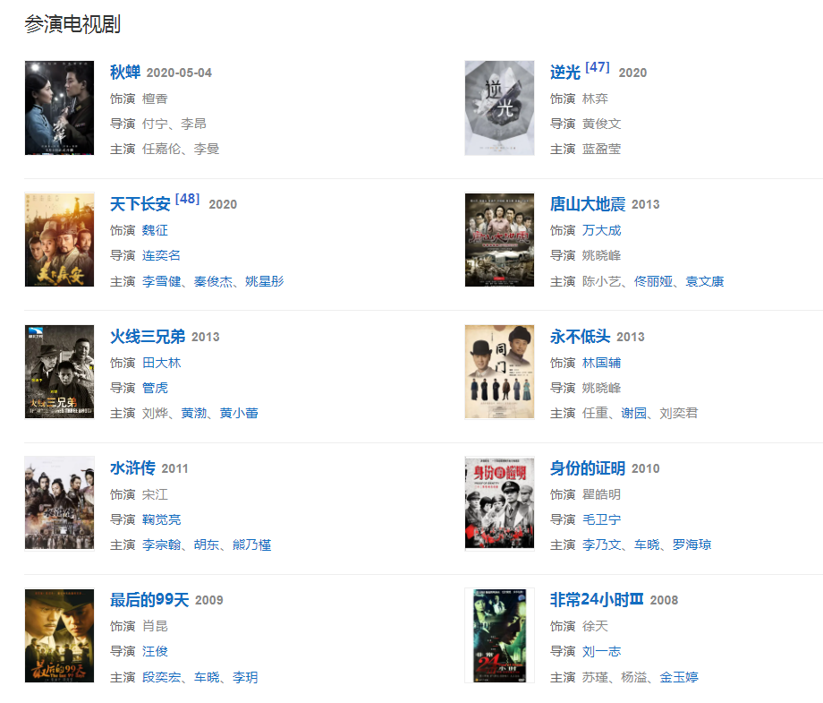 代表作品:集結(jié)號(hào)、智取威虎山、湄公河行動(dòng)、風(fēng)聲、廚子戲子痞子、水滸傳、中國(guó)機(jī)長(zhǎng)、中國(guó)醫(yī)生