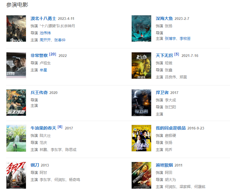 2006年正式踏入影視圈,鐵路文工團話劇團演員。2010年,接拍首部作品《南北大狀》。2012年,以講述海軍陸戰(zhàn)隊的青春勵志劇《火藍刀鋒》中飾演“野人”張沖這個個性鮮明的角色而頗具好感度。