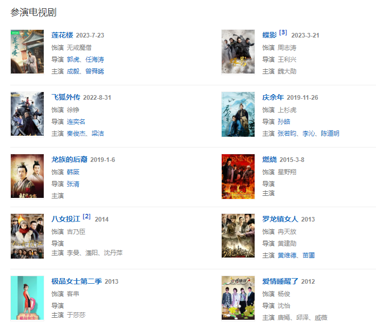 主要成就:27屆中國電視劇金鷹獎提名