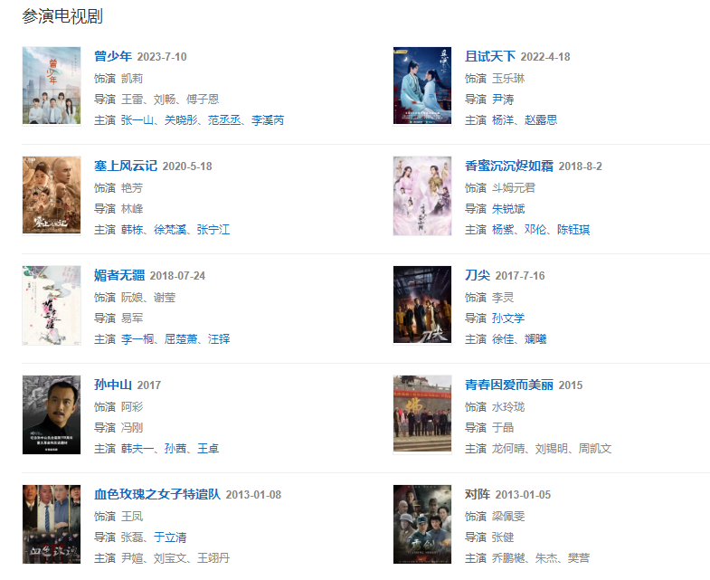 代表作品:我在天堂等你、幸福里九號(hào)、倚天屠龍記、小站風(fēng)云、血色玫瑰之女子特遣隊(duì)、青春因愛而美麗