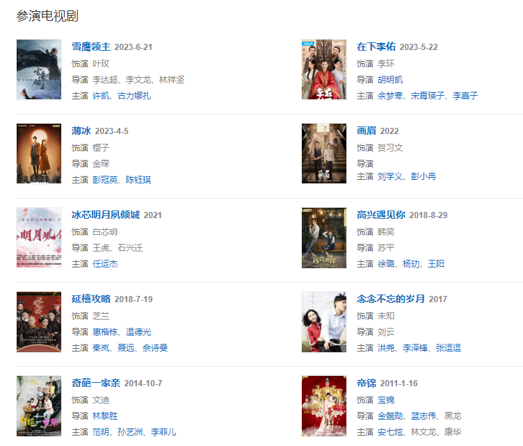 代表作品;雪域迷城、人魚帝國、帝錦、情戰(zhàn)、怪談