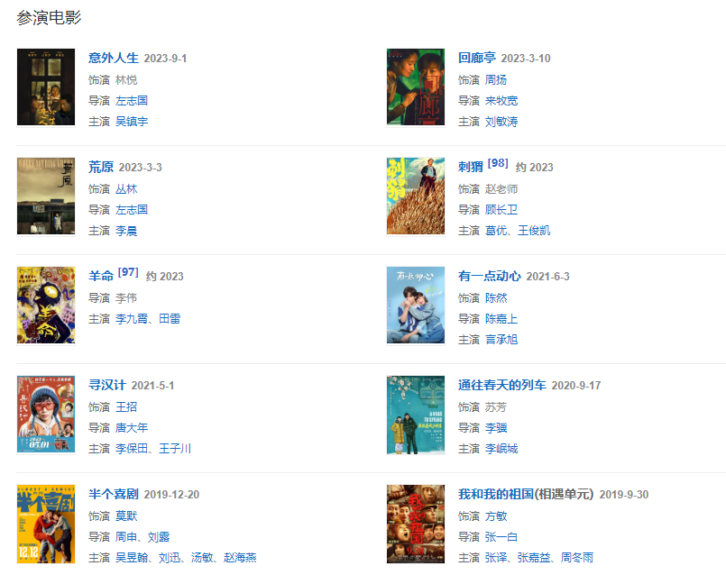 代表作品:驢得水、無名之輩、半個喜劇、我在他鄉(xiāng)挺好的、提著心吊著膽、銀河補習(xí)班、親愛的小孩