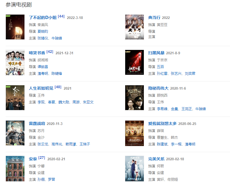 2022年2022年3月18日,參演的諜戰(zhàn)網(wǎng)劇《了不起的D小姐》播出,在劇中飾演秦美鳳。