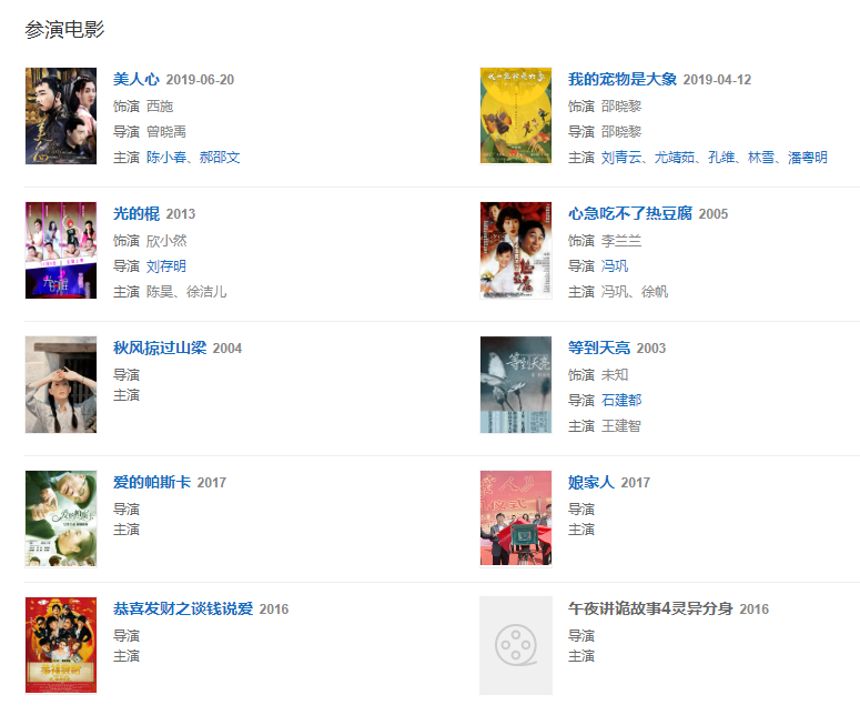 2004年6月,客串馮鞏自導(dǎo)、自演的喜劇電影《心急吃不了熱豆腐》,飾演李蘭蘭。