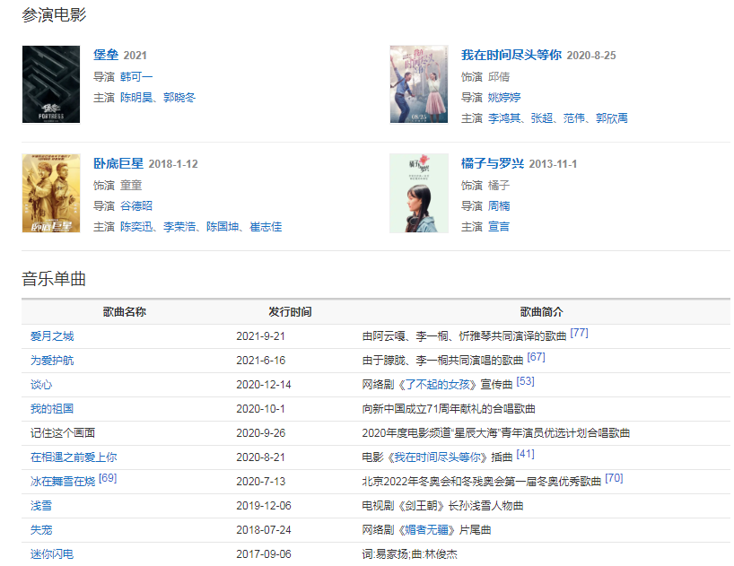 2021年2月4日,與胡一天搭檔主演都市勵(lì)志情感劇《我的時(shí)代,你的時(shí)代》在愛(ài)奇藝播出,李一桐在劇中飾演的艾情是機(jī)器人格斗行業(yè)的開(kāi)路人之一,與吳白為振興機(jī)器人格斗行業(yè)而拼搏。3月6日,獲得“品質(zhì)新銳劇星” 。3月7日,與陳若軒搭檔出演電視劇《理想照耀中國(guó)》單元之一《一家人》,李一桐在劇中飾演抗疫護(hù)士杜富佳 。3月25日,與angelababy、張小斐、袁姍姍等藝人出席費(fèi)加羅風(fēng)尚盛典。4月15日,和許凱合作主演的古裝愛(ài)情輕喜劇《驪歌行》開(kāi)播,在劇中李一桐飾演普通商人出身的傅柔。4月17日,參加真人秀《我是女演員》;5月,與畢雯珺搭檔主演古裝懸疑劇《九霄寒夜暖》,并在劇中飾演機(jī)智女捕快蘇玖兒。7月23日,與多位文化藝術(shù)工作者參與錄制的歌曲《唱支山歌給黨聽(tīng)》青春版MV發(fā)布 。6月5日,參加的真人秀《姐妹俱樂(lè)部》播出。9月21日,在東方衛(wèi)視《朤月東方——中秋夢(mèng)幻夜》上表演情景故事音樂(lè)劇《愛(ài)月之城》。10月2日,以飛行嘉賓參加錄制的戶(hù)外美食真人秀節(jié)目《打卡吧!吃貨團(tuán)》播出;同日,以飛行嘉賓參加錄制的游戲綜藝《牛氣滿滿的哥哥》播出。10月8日,主演的電視劇《狂飆》官宣開(kāi)機(jī)。10月15日,在《抖音美好奇妙夜》上與范丞丞合唱歌曲《Ring Ring Ring》和《TA》。10月18日,主演的諜戰(zhàn)題材電影《堡壘》在江蘇無(wú)錫正式殺青。12月23日,參加綜藝《開(kāi)拍吧》 。12月31日,參加《2022江蘇衛(wèi)視跨年演唱會(huì)》,演唱歌曲《青春》、《入?!贰?/span>