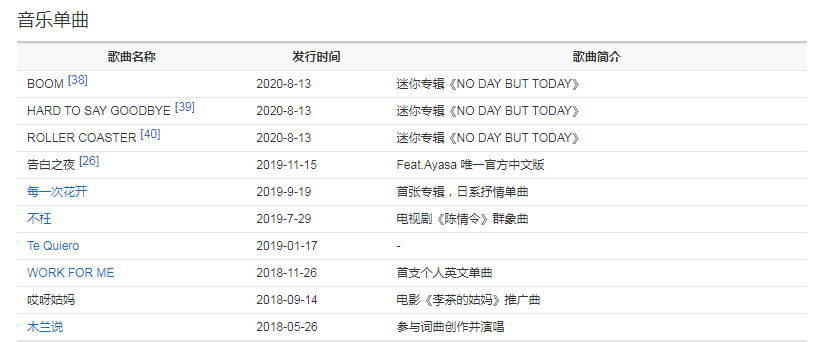 代表作品:WORK FOR ME、哎呀姑媽、創(chuàng)造101、木蘭說、疾風(fēng)、愛很美味