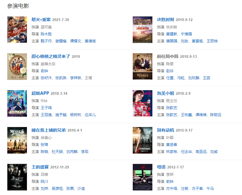 2012年,憑借古裝傳奇片《王的盛宴》提名第七屆亞洲電影節(jié)“最佳女配角”。同年,在古裝傳奇劇《楚漢傳奇》中飾演呂雉。