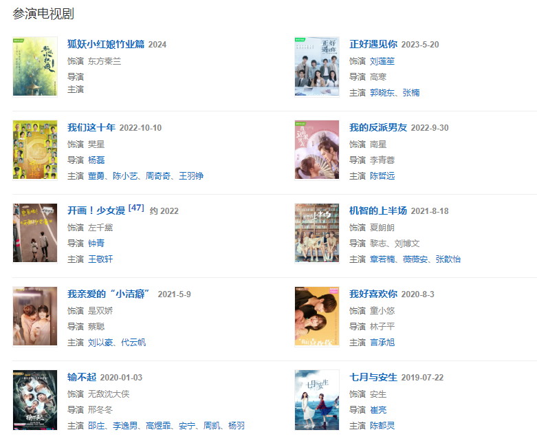 2017年,出演青春校園網(wǎng)劇《致我們單純的小美好》中的陳小希一角;同年,出演由柴智屏監(jiān)制的青春言情偶像劇《流星花園》。