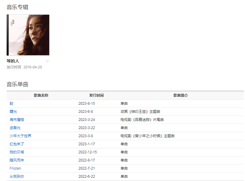 代表作品:等的人、冰、見習(xí)法醫(yī)、如果歲月可回頭
