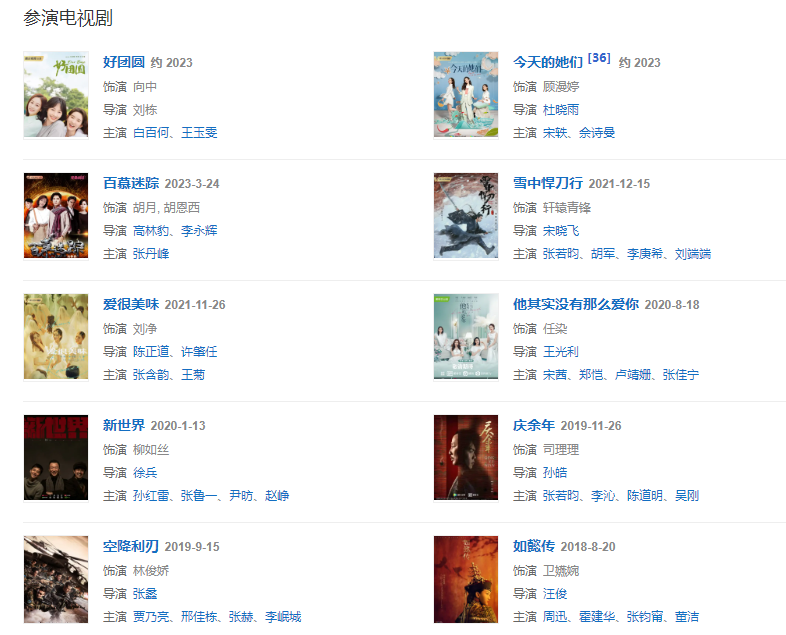 代表作品:花千骨、慶余年、如懿傳、新世界、雪中悍刀行、愛很美味