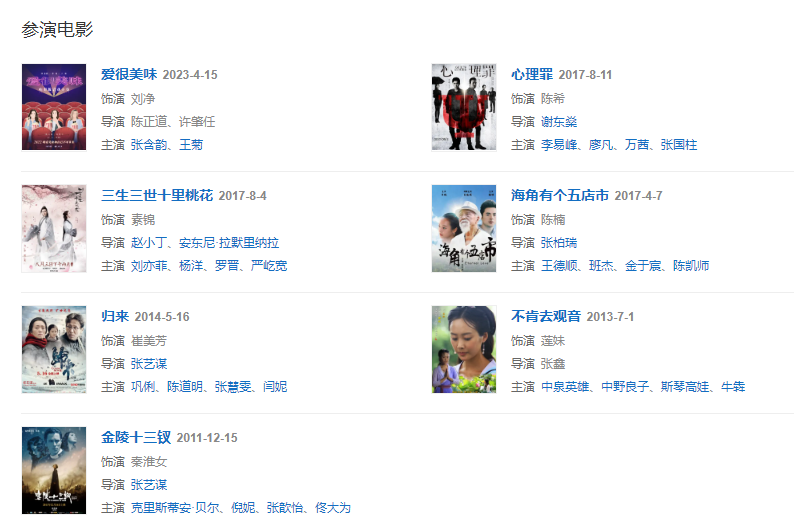 2014年,出演張藝謀執(zhí)導(dǎo)的文藝片《歸來》。