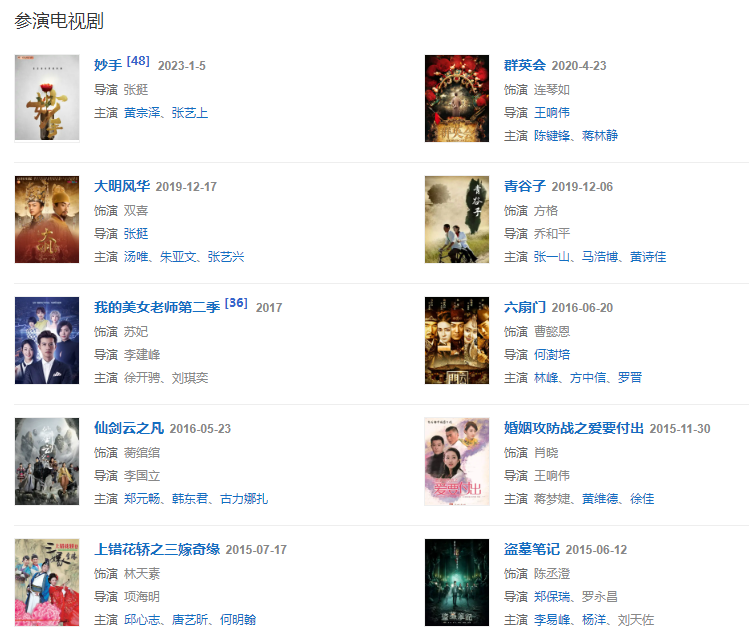 代表作品:新還珠格格、艾米加油、怪俠歐陽德、隋唐英雄、神雕俠侶、盜墓筆記、六扇門、青谷子
