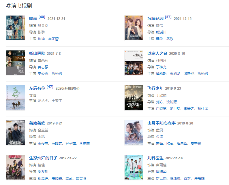 代表作品:贖罪門(mén)、白鹿原、轉(zhuǎn)角之戀、楚喬傳、飛行少年