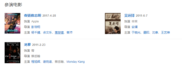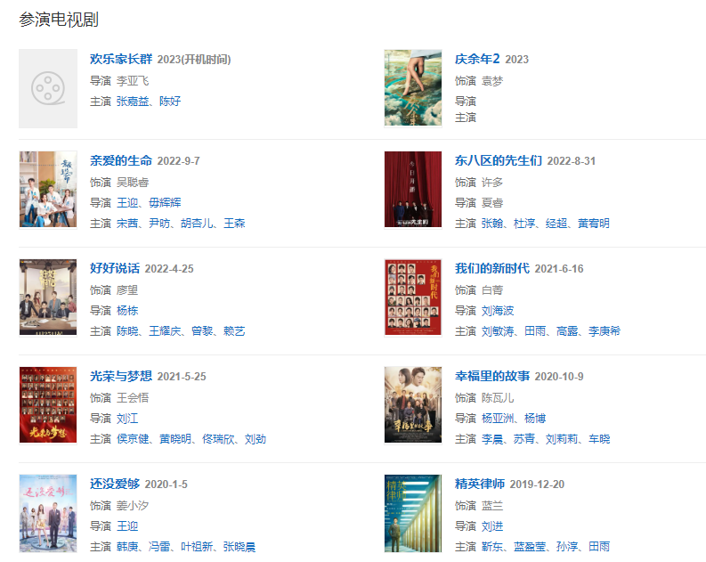 代表作品:大好時(shí)光、我的!體育老師、二胎時(shí)代、我愛(ài)男閨蜜、丑角爸爸、春嬌救志明、你好喬安