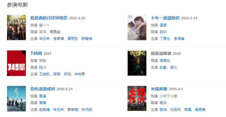 2018年,出演大銀幕處女作《悲傷逆流成河》,從而正式開始演藝生涯。2019年,出演由陸川執(zhí)導的冒險電影《749局》。2020年4月,出演的古裝傳奇劇《清平樂》播出,在劇中飾演趙徽柔;9月17日,出演的《最美逆行者》在中央電視臺綜合頻道播出,她在其中飾演于麗娜。