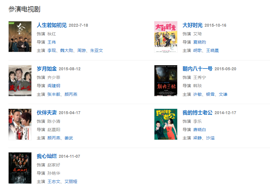 代表作品:踏血尋梅、脫皮爸爸、我心燦爛、我的博士老公、人生若如初見、風(fēng)再起時(shí)