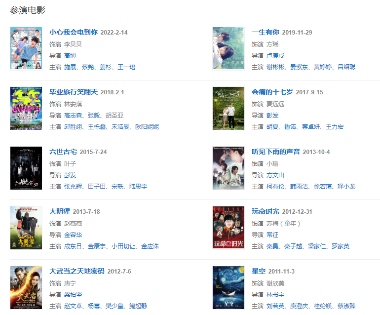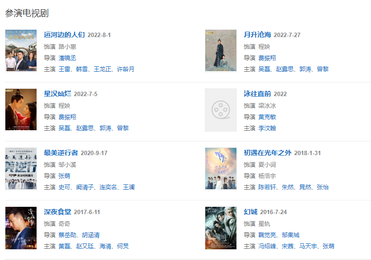 2020年,參演的脫貧攻堅(jiān)主題公益紀(jì)實(shí)類節(jié)目《溫暖有光放映隊(duì)》在CCTV-6播出 。