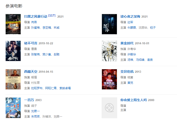 代表作品:一百萬、非你不可、蝴蝶飛飛、人間正道是滄桑、幸福里九號、小魚兒與花無缺