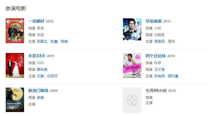 2011年,因在文章、白百何領(lǐng)銜主演的愛(ài)情電影《失戀33天》飾演CICI而受到關(guān)注。