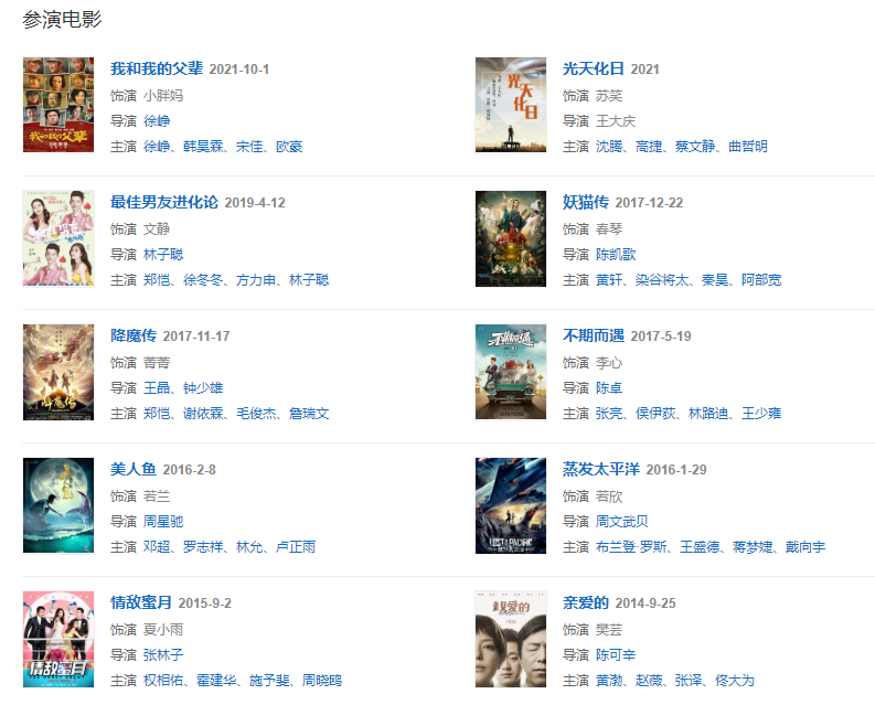 代表作品:妖貓傳、美人魚、白鹿原、錢學(xué)森、長江7號(hào)、龍嶺迷窟、云南蟲谷