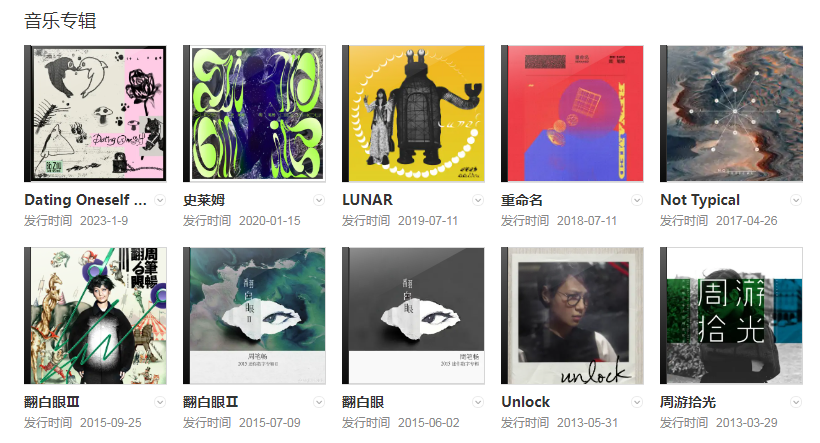 代表作品:筆記、誰動了我的琴弦、一周年、對嘴、隔墻花、最美的期待、用盡我的一切奔向你、去流浪