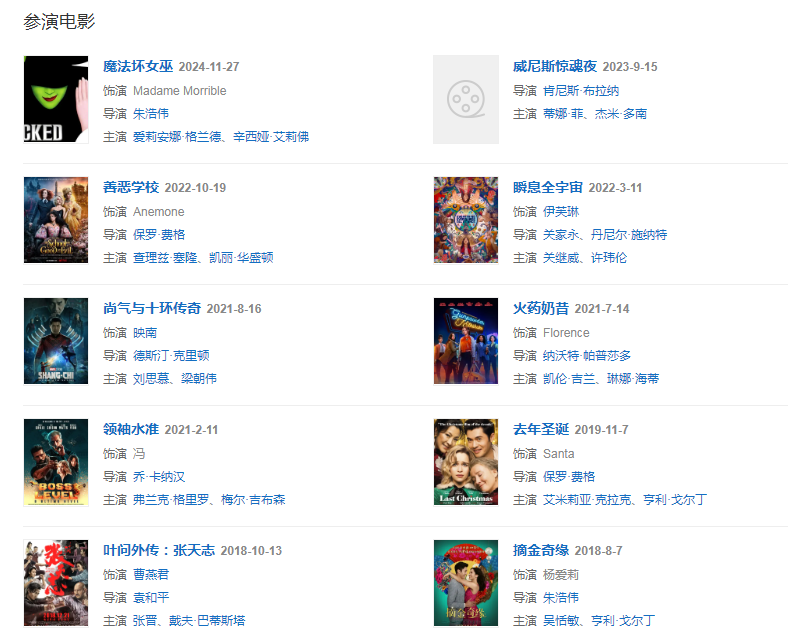 2020年,加盟派拉蒙動(dòng)畫片《老虎的學(xué)徒》配音陣容。主演動(dòng)作片《火藥奶昔》,將于2021年上映。