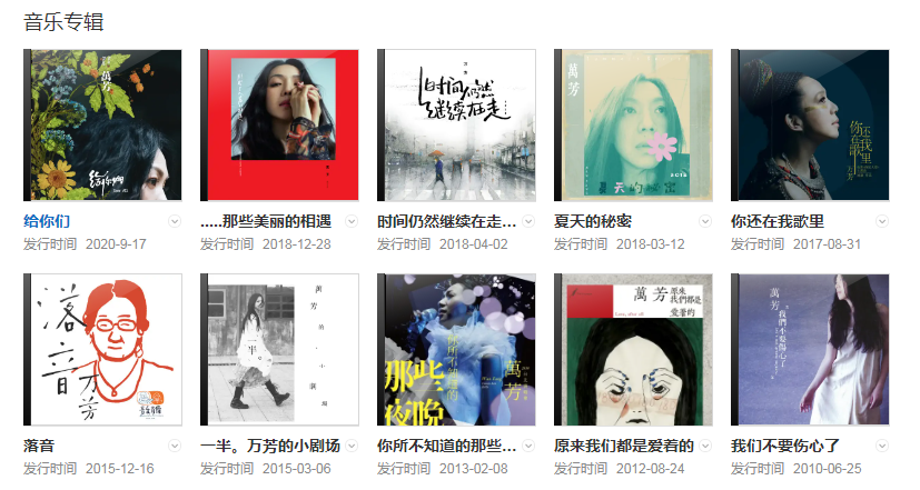 代表作品:新不了情、時(shí)間仍然繼續(xù)在走、原來(lái)我們都是愛(ài)著的、我們不要傷心了、夜照亮了夜、就值得了愛(ài)、猜心、割愛(ài)、碧海情天、愛(ài)情限時(shí)批、不愛(ài)練習(xí)曲