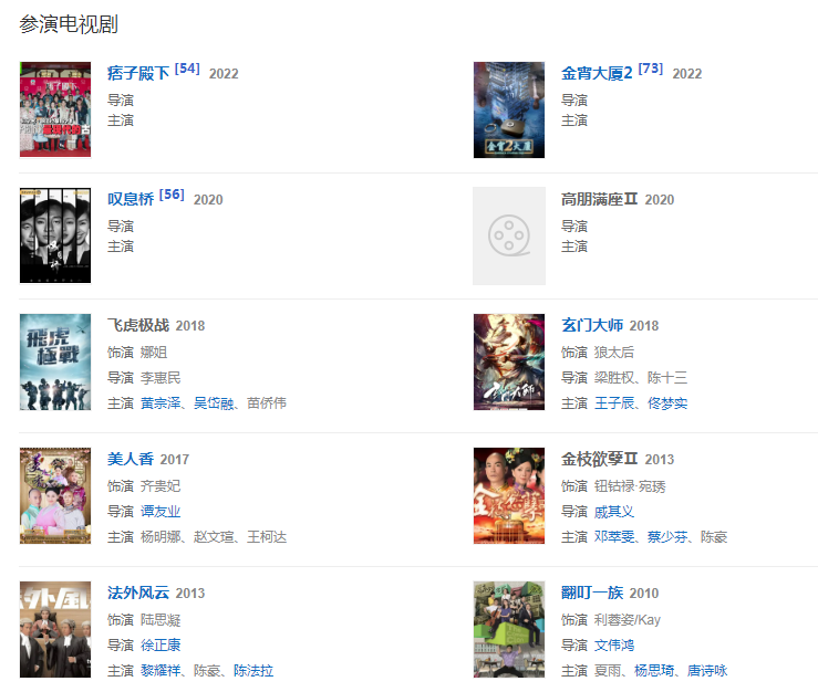 代表作品:銀狐、豪門、戲王之王、天地男兒、大唐雙龍傳、勝者為王Ⅲ王者之戰(zhàn)、金枝欲孽2、緣來自有機、街市的童話