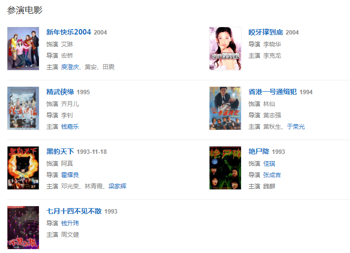 1994年,憑借恐怖片《七月十四不見不散》入圍香港電影金像獎新人獎。