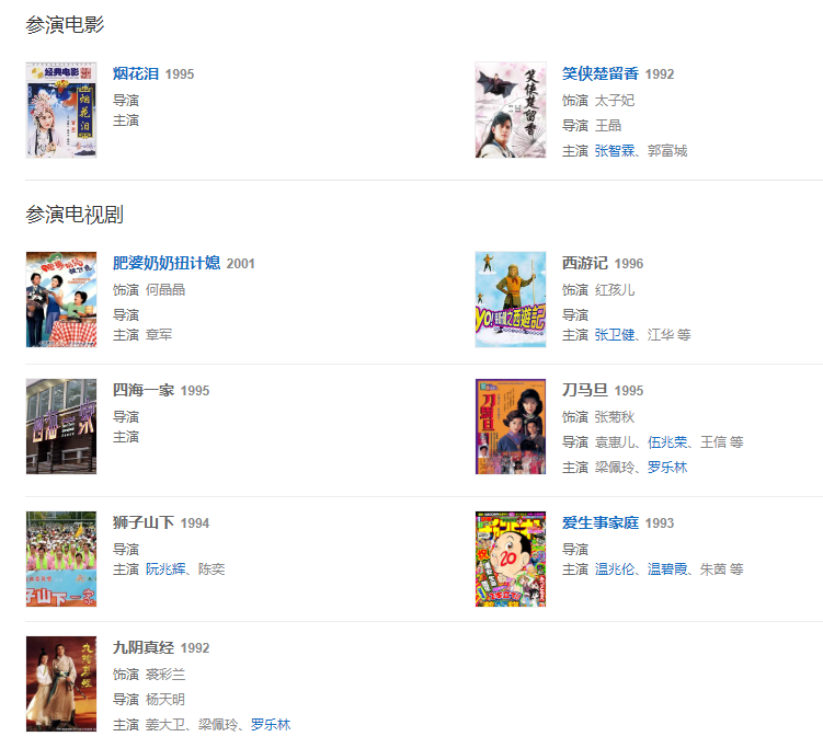 2001年,為TVB拍攝電視劇<肥婆奶奶扭計(jì)媳>,與沈殿霞合作。