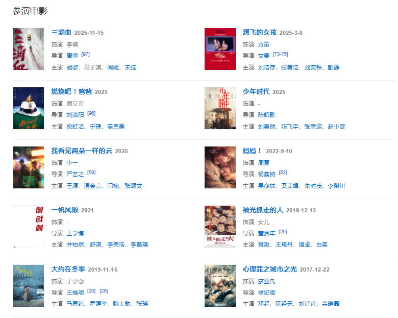 2025年,特邀主演的電視劇《異人之下之決戰(zhàn)碧游村》播出;3月,主演的電影《想飛的女孩》上映;5月,官宣出演《燃燒吧!爸爸》。